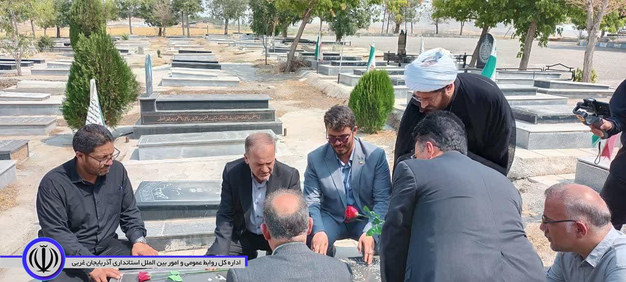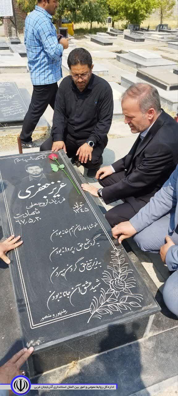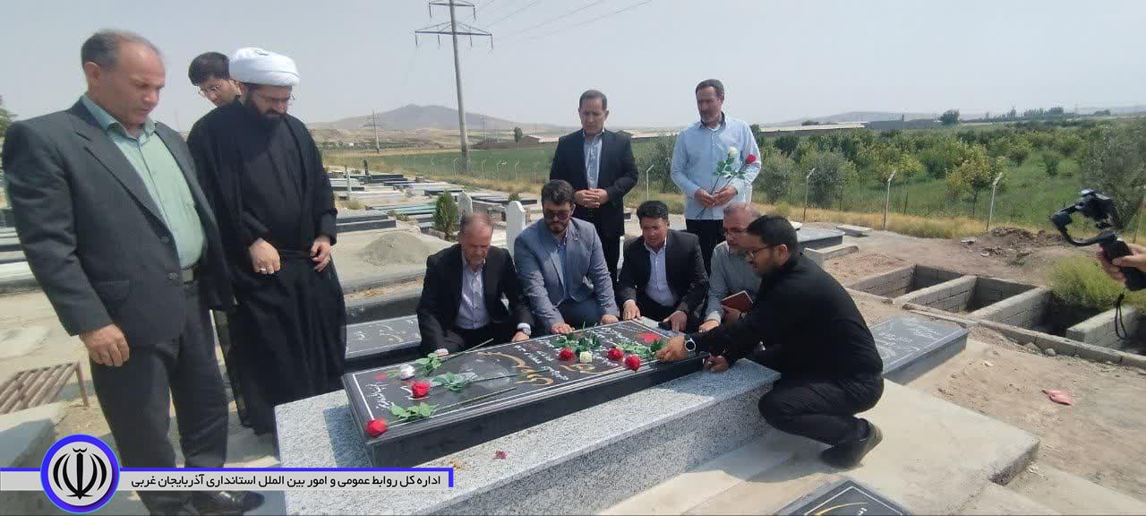 حضور جعفری سرپرست فرمانداری شهرستان نقده بهمراه امام جمعه و مسوولین شهر محمدیار در مزار شهدای این شهر و ادای احترام به مقام والای شهدا