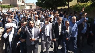 راهپیمایی مردم شهید پرور و زمان شناس شهرستان نقده در محکومیت جنایات اخیر رژیم صهیونیستی با حضور اسماعیلی معاون سیاسی، امنیتی و اجتماعی فرمانداری